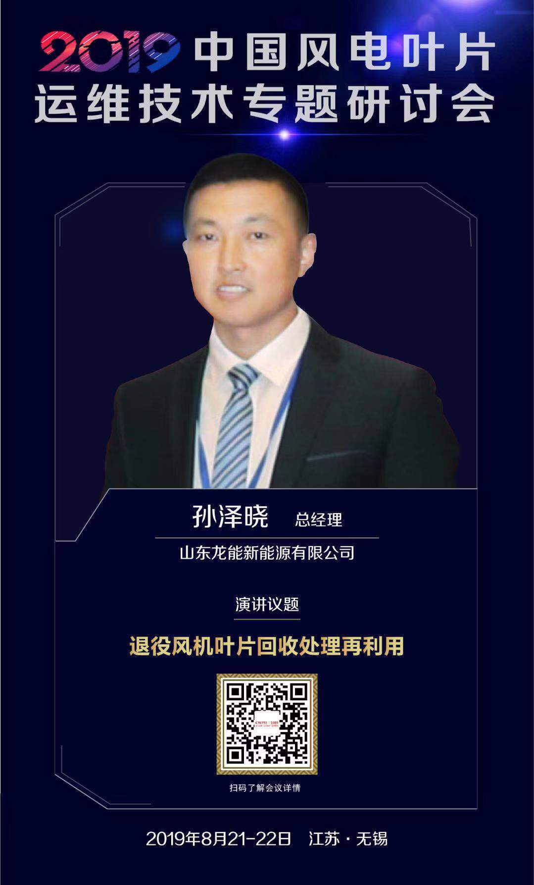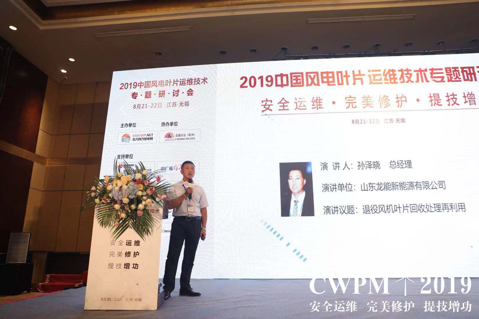 2019年8月21日-22日,山東龍能新能源有限公司總經(jīng)理受邀參加無錫的《中國風(fēng)電葉片運維專題技術(shù)研討會》作關(guān)于《退役風(fēng)機(jī)葉片回收處理再利用》的報告,總經(jīng)理孫總做了精彩演講。